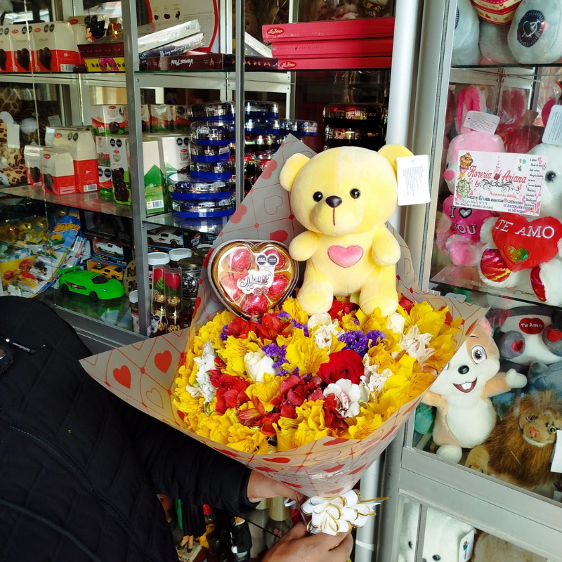 Sorprende con un detalle que enamora. Nuestros arreglos florales con peluches combinan la delicadeza de flores frescas con la ternura de adorables peluches, creando el regalo perfecto para expresar amor, amistad o gratitud. Cada diseño es cuidadosamente elaborado para transmitir emociones y crear momentos inolvidables. Ideal para cumpleaños, aniversarios, San Valentín o simplemente para decir "te quiero".